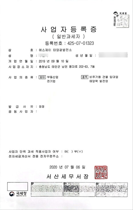 충남 태안군 100kW 재배사 태양광발전소 매매
