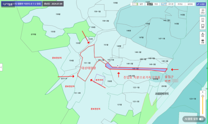 - 지목 : 잡종지, 보전관리