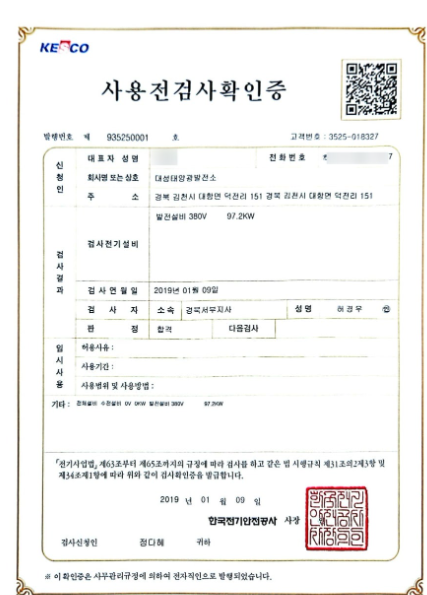 - 발전소명 : 김천 대성 태양광 발전소